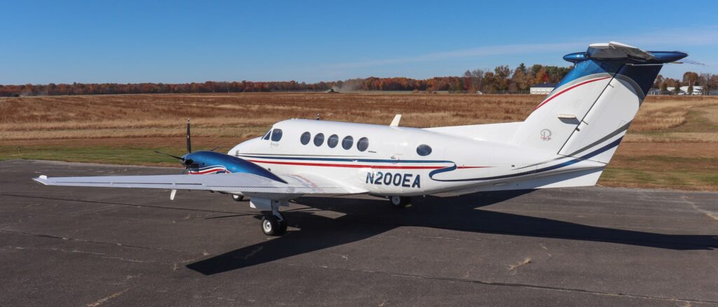 The Beechcraft King Air B200 stands as one of the most respected and versatile twin-turboprops ever built, and this particular aircraft exemplifies why. With just 8,600 total time on the airframe and 1,800 hours since major overhaul (SMOH) on both P&W PT6A-42 engines, this B200 offers exceptional performance, reliability, and value. Both engines have 10 SHOTs completed by Standard Aero, and it’s equipped with brand-new 5-blade Hartzell props featuring only 115 hours since new and polished spinners for a sleek, modern look. This King Air B200 also features high flotation gear for those unimproved runways. Meticulously maintained and professionally managed and flown, this aircraft has no damage history and an excellent maintenance pedigree. Recent maintenance includes Phase 1-2 completed 4/2024Phase 3-4 completed 6/20256-year gear overhaul completed 6/2025, and wing bolts C/W 6/2025—ensuring turnkey readiness for its next owner for a year end delivery.